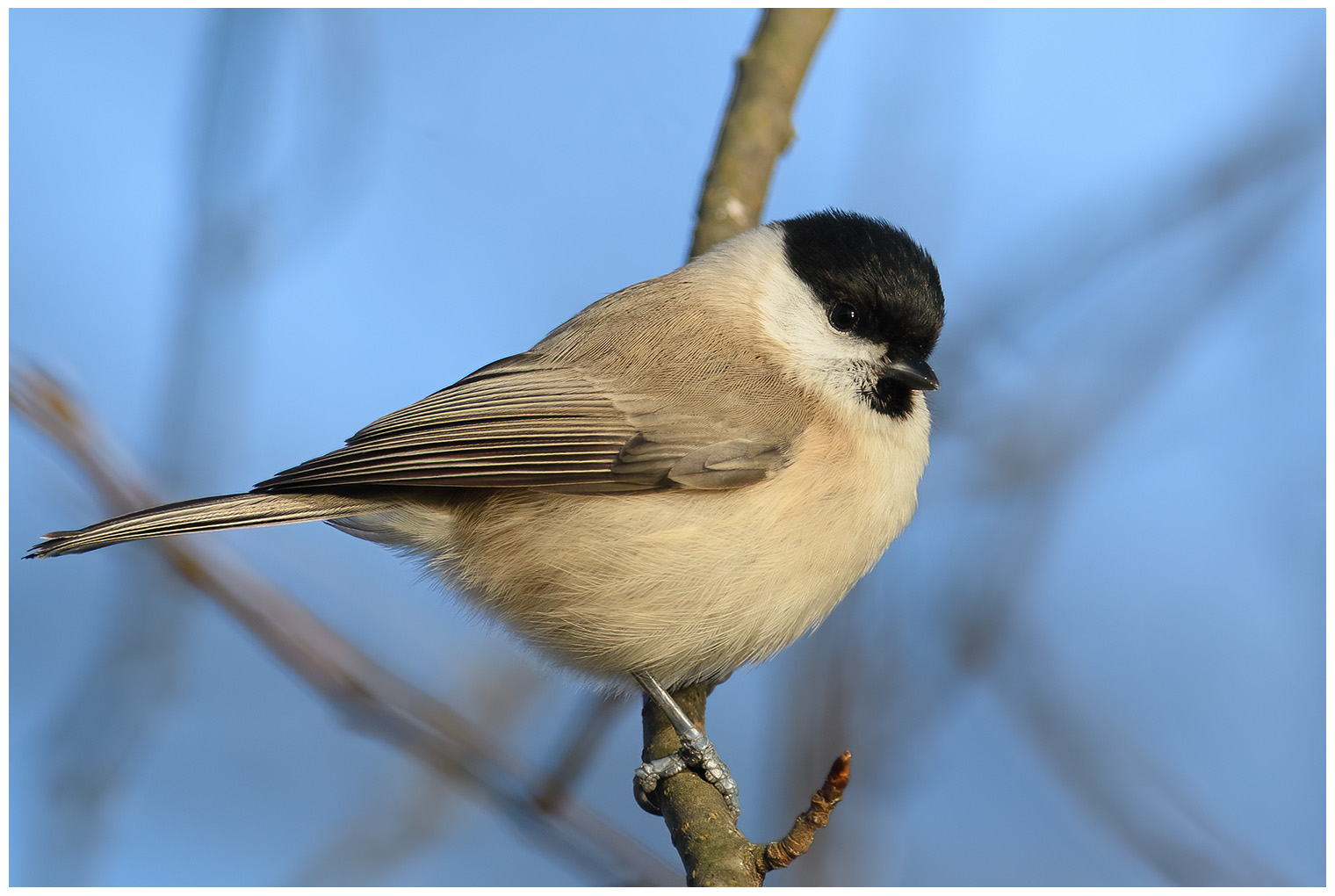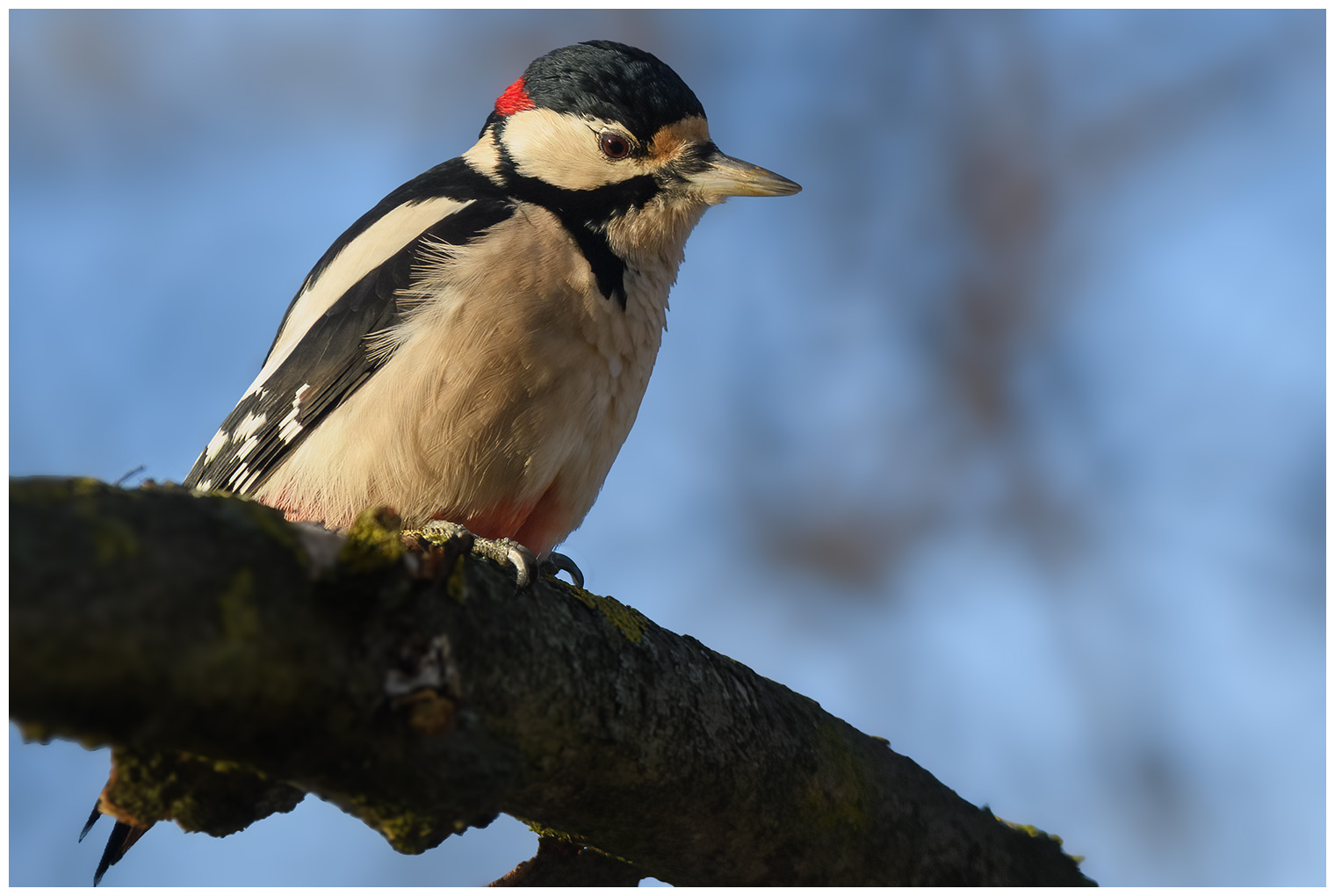 Tyvärr ej så många arter vid Leo medans vi var där. En flock med ca 100 vigg, 2 st salskrake, några knipor, skäggdopping. Några domherrar möte upp oss vid gården och en älgtjur ute på fältet. Både jag och Marcus vill ju så gärna fotografera också så vi åkte sedan till Strömma. En rödhake hörde vi och sedan såg. Jag fotograferade större hackspett, entita och blåmes.