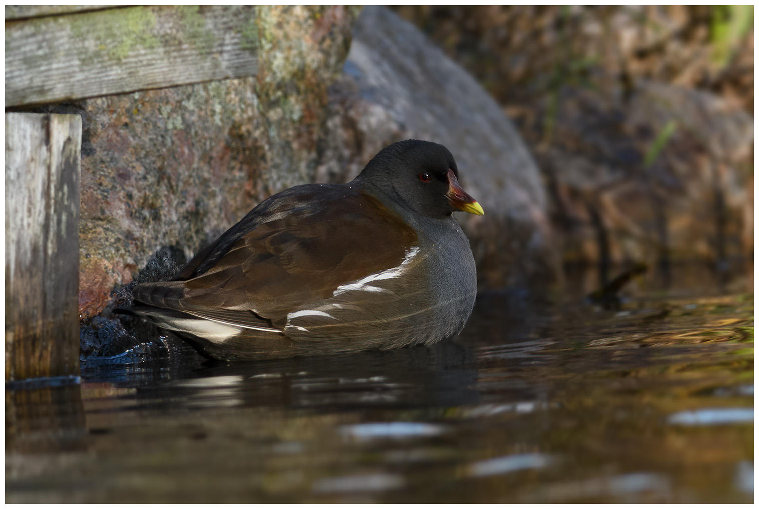 Då är det den tredje helgen i november då det är kommunrally. Marcus hämtade mig strax före 8 och första stoppet blev vid Strömsparken. Är ju så nära mig och vi ville verkligen få in rörhönan som varit nu i Strömsparken i några veckor. Tog ej lång tid innan vi så den. En gråhäger stod även i ån så tog några bilder på den stora fågeln. Nästa stop blev Leonardsberg och tanken var att få in ägretthäger som jag sett varje gång när jag varit där men inte var det någon där inte.