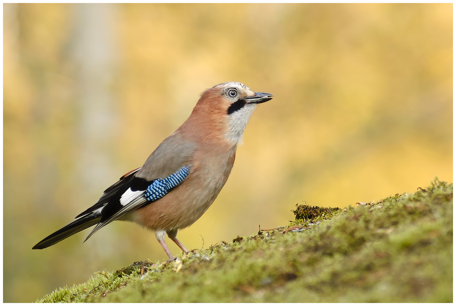 Nötskrika – Eurasian Jay tillhör familjen kråkfåglar. Är en färgglad och intelligent fågel som är lätt att känna igen på sin blåa fläck på vingen. Den har en storlek på cirka 35 cm. Den finns i alla typer av skog, men trivs bäst i äldre blandskog, framför allt med inslag av ek, eftersom ekollon är en viktig vinterföda. Dess intelligens är slående; nötskrikan gömmer undan stora mängder ekollon under hösten för att ha mat under vintern. Den har ett imponerande minne och kan hitta tillbaka till tusentals gömställen.